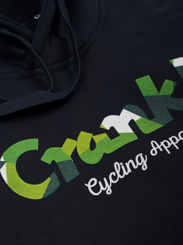 Wykonana w z grubej ekologicznej bawełny, zaś nadruk zrobiony został przy użyciu ekologicznych i oddychających barwników: wywabu i farb wodnych. Z przodu dwie oddzielne kieszenie, duży kaptur, duze logo Crankk w wersji camo. Z tyłu natomiast giga nadruk jednej z najlepszych grafik rowerowych.