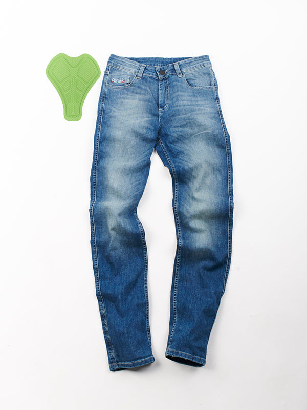 Damskie jeansy COURSE wykonaliśmy z niesamowicie miękkiego dżinsu, który świetnie sprawdza się w trakcie jazdy na rowerze, jak i w zwykłych codziennych sytuacjach. Dzięki unikalnej technologii nasze spodnie możesz używać z wkładką rowerową lub bez niej co sprawia że są one w pełni uniwersalne.