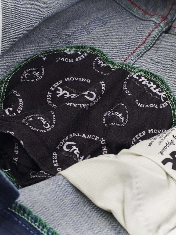 Podwijając nogawki odsłonisz odblaski 3M zwiekszające Twoje bezpieczeństwo na drodze po zmroku. Każda para spodni wyposażona jest w profesjonalną wkładkę rowerową firmy Elastic Interface. Cały komplet jest zapakowany w bawełnianą ekologiczną torbę Crankk.