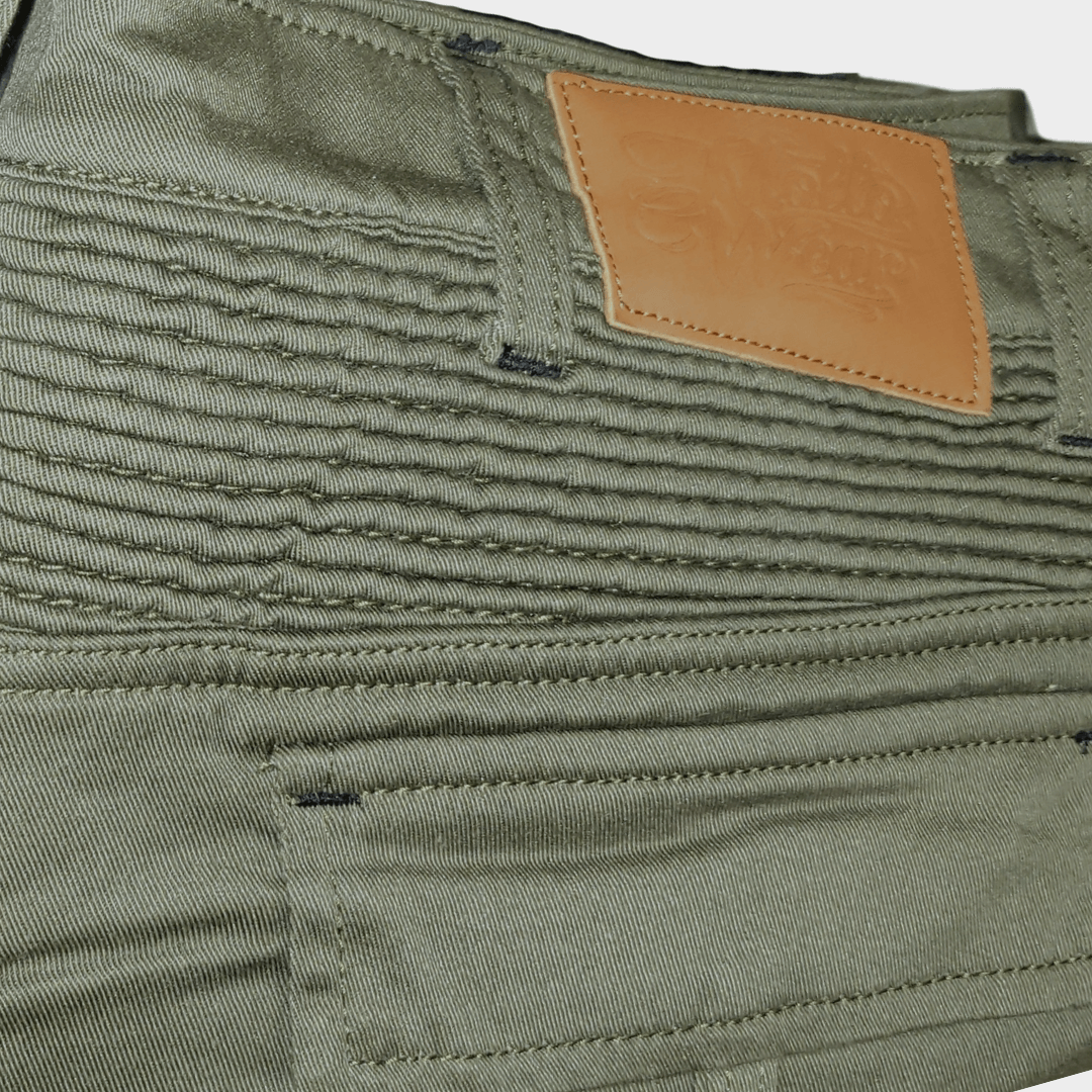 Helios Green 2 to oliwkowe bojówki motocyklowe, które spełniają najwyższe normy bezpieczeństwa. Dzięki nim możesz jeździć na motocyklu teoretycznie w zwykłych spodniach (bo tak wyglądają z zewnątrz) z dodatkowym zabezpieczeniem (warstwa Kevlaru). Stworzyliśmy je z wysokiej jakości rozciągliwej bawełny, a więc nie będą ograniczały Twoich ruchów podczas jazdy. Są delikatne dla skóry, a dodatkowo mają wszytą zabezpieczającą warstwę z Kevlaru® i wysokiej klasy ochraniacze na kolanach. Podszewka powstała z wykorzystaniem solidnego i renomowanego 100% oryginalnego DuPont™ Kevlar®.