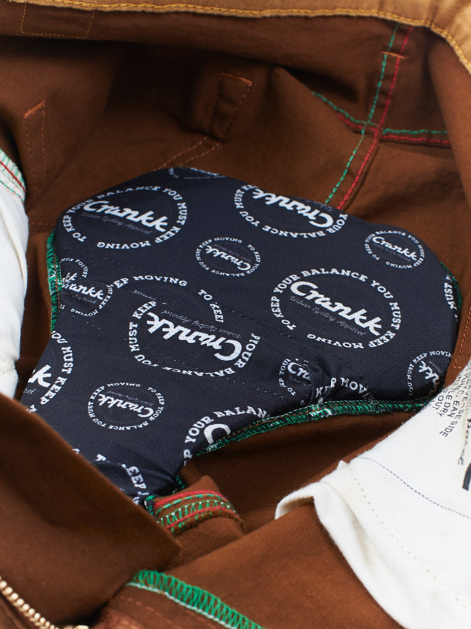 Unikalna technologia Crankk polega na połączeniu klasycznej formy z poprawą komfortu w trakcie jazdy na rowerze. Spodnie wyglądają jak zwykłe spodenki jednak zawierają specjalną kieszeń wykonaną z lycry, w której znajdziecie profesjonalną wkładkę rowerową. Wkładka nie jest wszyta na stałe i jest prosta do wyjęcia, co w błyskawiczny sposób zmienia spodnie rowerowe w standardowe i odwrotnie.[readmore]